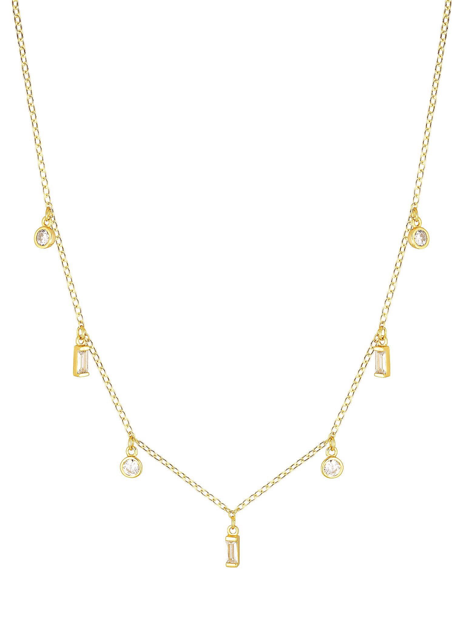 Exquisite, our Redeem Necklace unveils round and rectangle clear coloured glass pendants that hang softly from a fine gold chain. Embrace freedom with redeeming love.